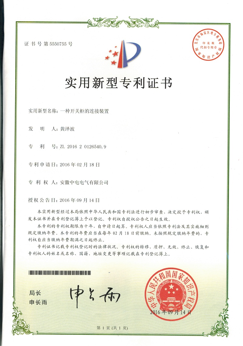 證書(shū)-開(kāi)關(guān)柜的連接裝置