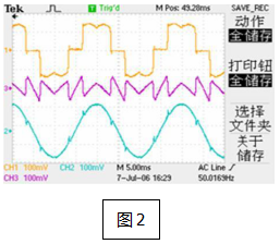 圖1是有源濾波裝置治理諧波污染的原理示意圖,其治理目標(biāo)是要在電源側(cè)得到只含有50Hz正弦波的電流。其中IL為非線性負(fù)載電流, Ic為有源濾波器發(fā)出的補(bǔ)償電流,Is為電源側(cè)總電流。有源濾波器投入前Is等于IL,圖2為有源濾波器投入后TEK示波器記錄的三個電流的波形,最上面的是諧波含量豐富的非線性負(fù)載電流IL,中間是有源濾波裝置發(fā)出的補(bǔ)償電流Ic,最下面的是補(bǔ)償后的諧波含量很小的總電流Is。